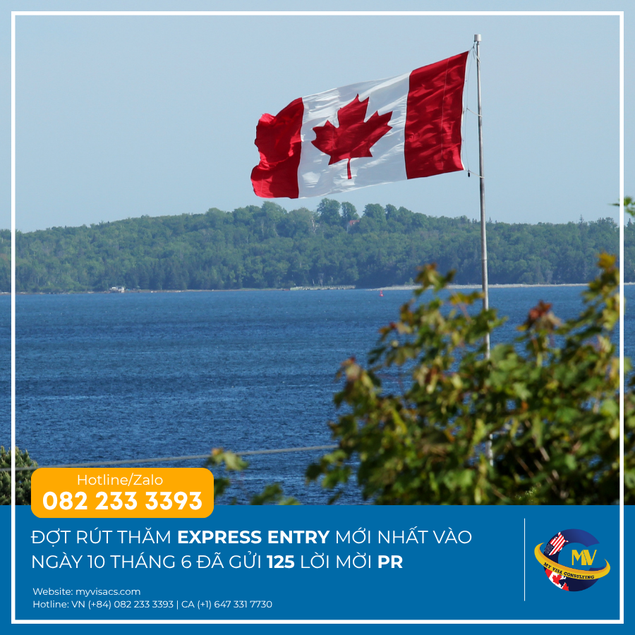 ĐỢT RÚT THĂM EXPRESS ENTRY MỚI NHẤT CỦA CANADA VÀO NGÀY 10 THÁNG 6 ĐÃ GỬI 125 LỜI MỜI PR